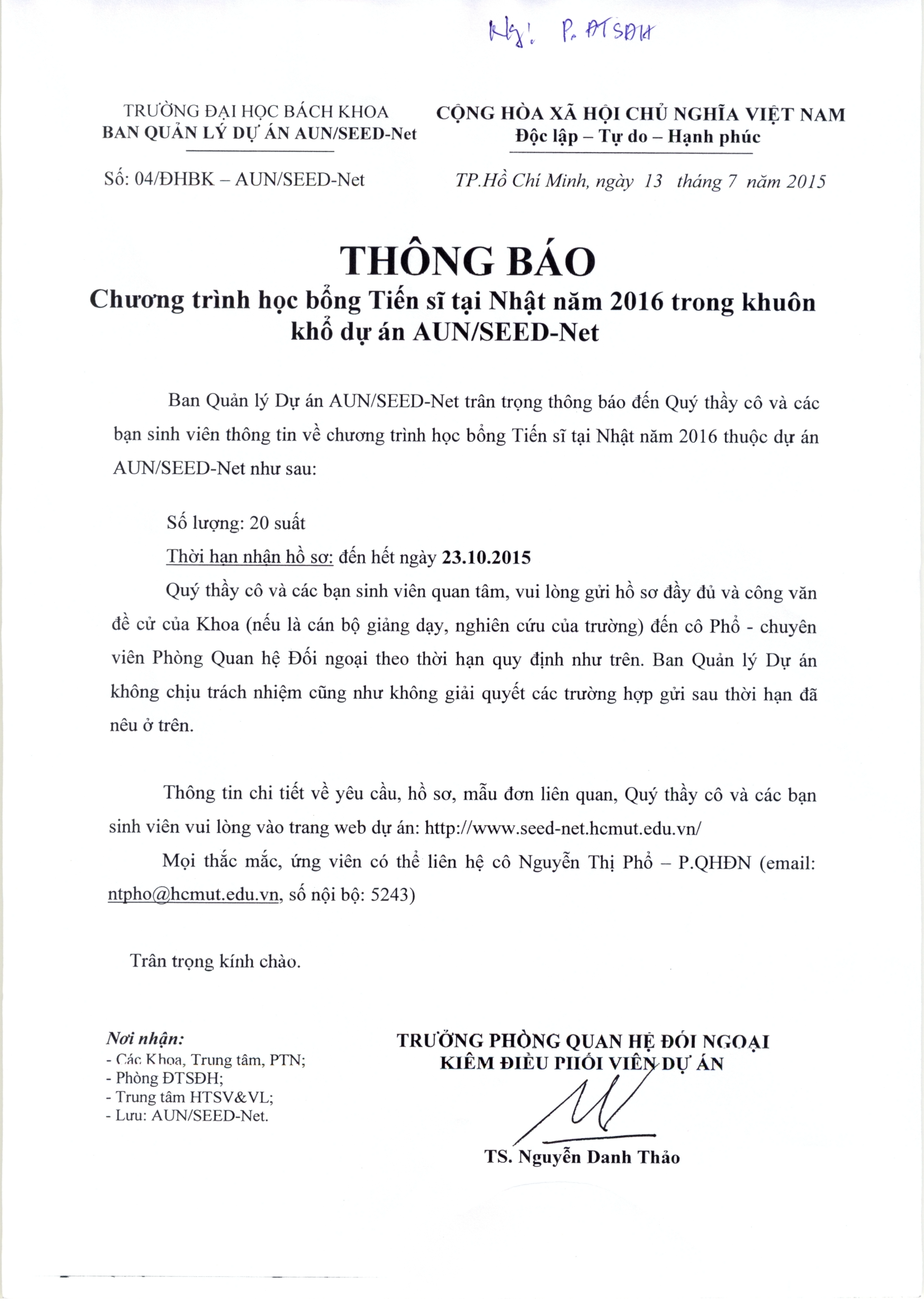 Chương trình học bổng Tiến sĩ tại Nhật năm 2016