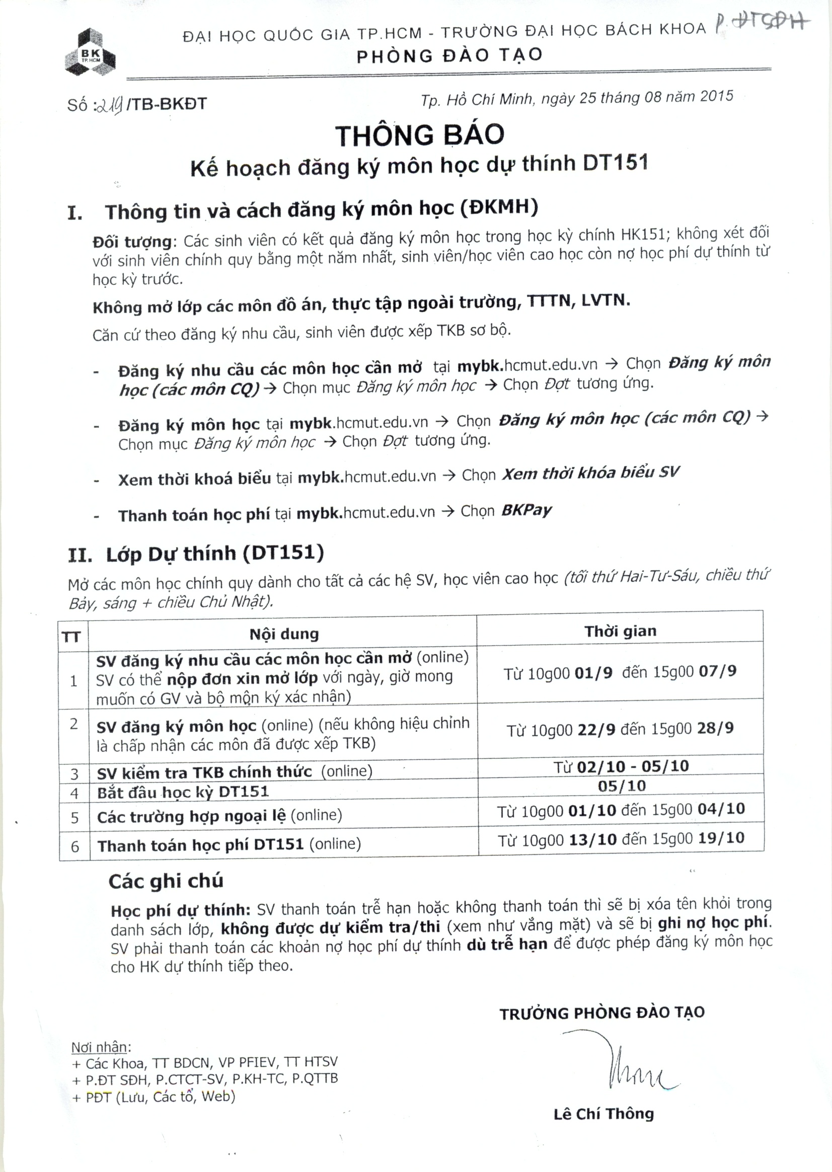 Thông báo Thạc Sĩ tại Bách Khoa